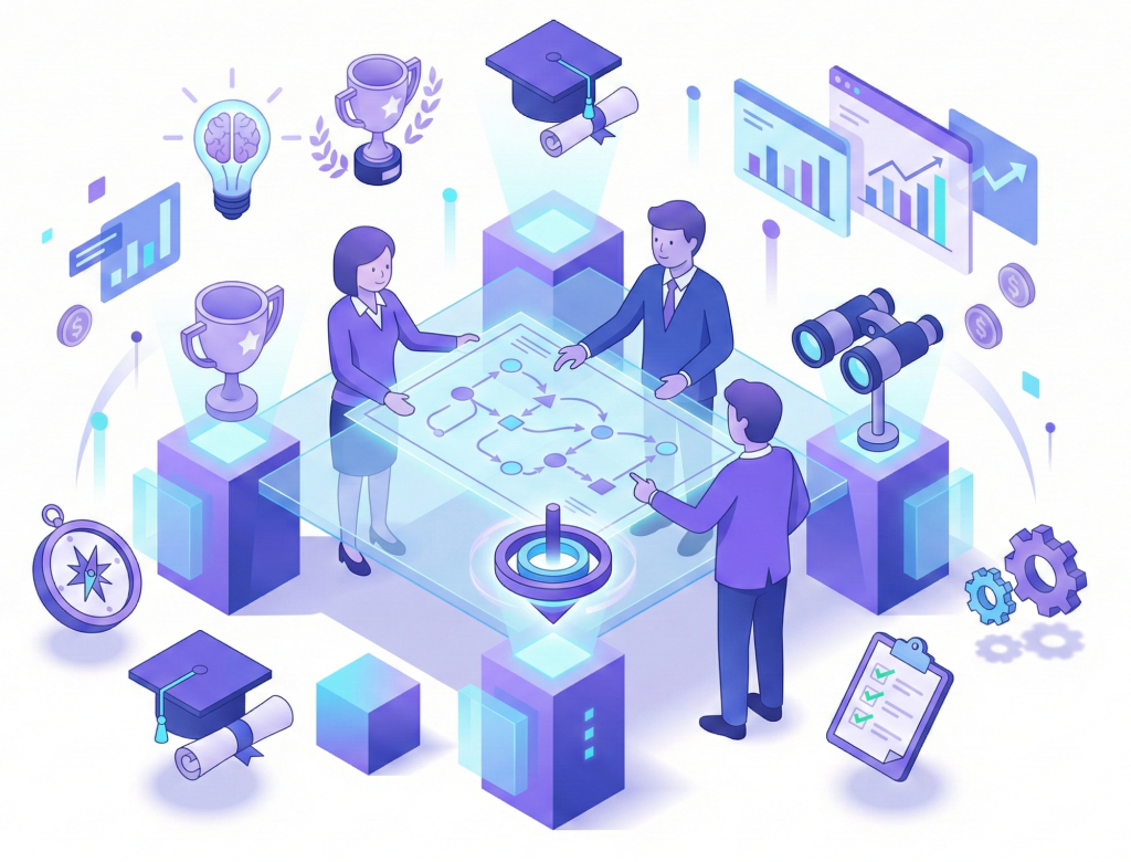 Every engagement begins with understanding your unique context: your organization’s culture, your team’s capabilities, your stakeholders’ needs, and your strategic goals. We then leverage our deep domain expertise and proven methodologies—including founder Chris Cannon’s “spinning top” framework—to deliver practical, actionable solutions.